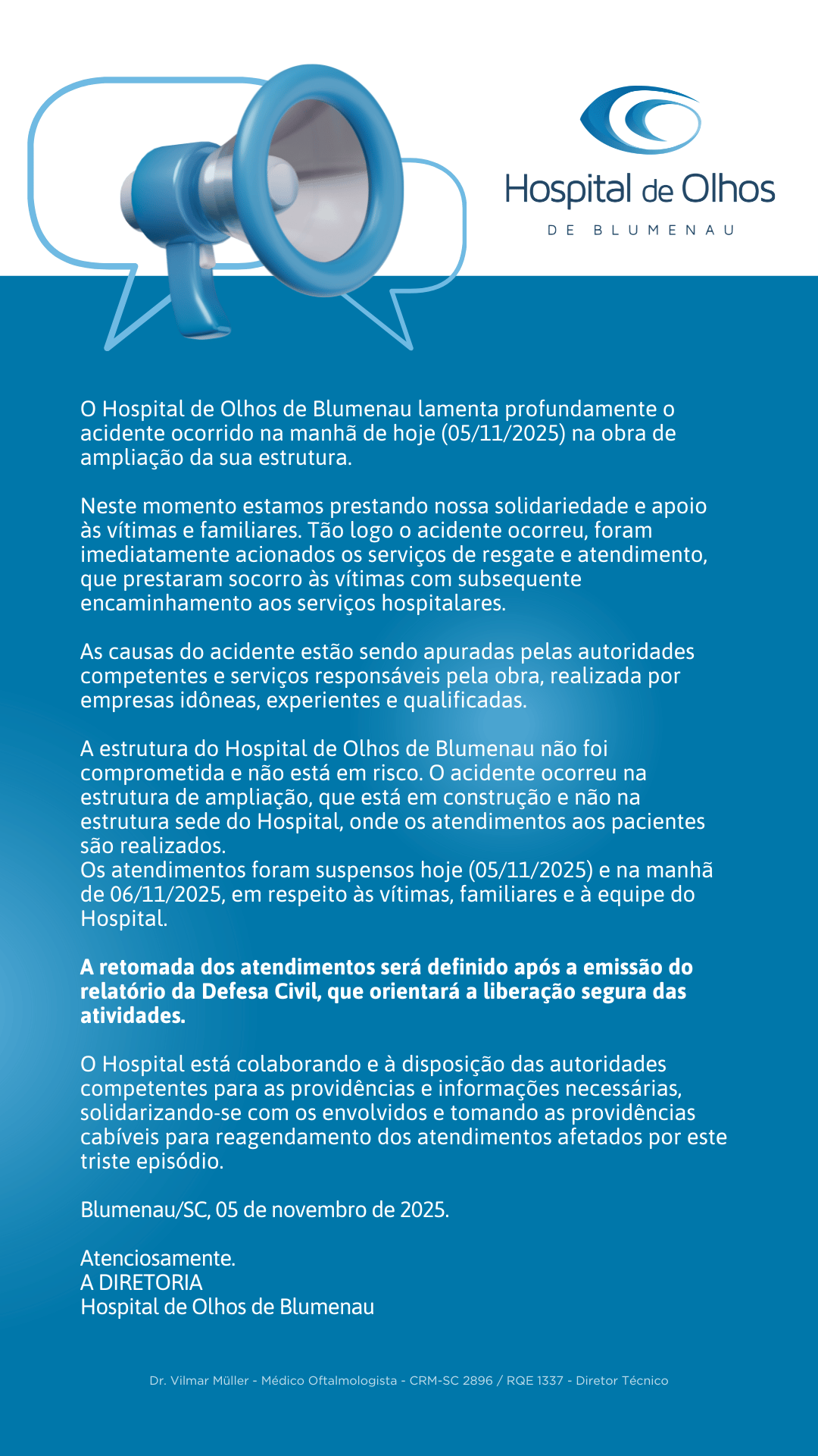 No Dia Mundial da Visão, o Hospital de Olhos de Blumenau orienta que a população procure um Oftalmologista de confiança sempre que houver alguma alteração nos olhos