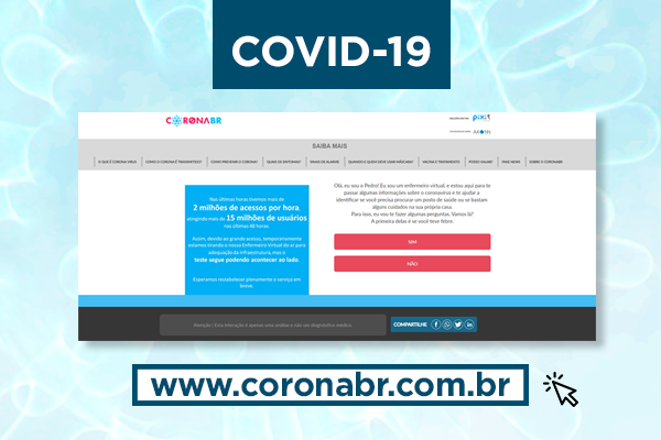 Faça o teste, é gratuito: www.coronabr.com.br Outra opção para tirar dúvidas se tiver sintomas ou esteve perto de alguém com doença confirmada, ligue para SNS 24 (808 24 24 24) antes de se deslocar a um serviço de saúde.
