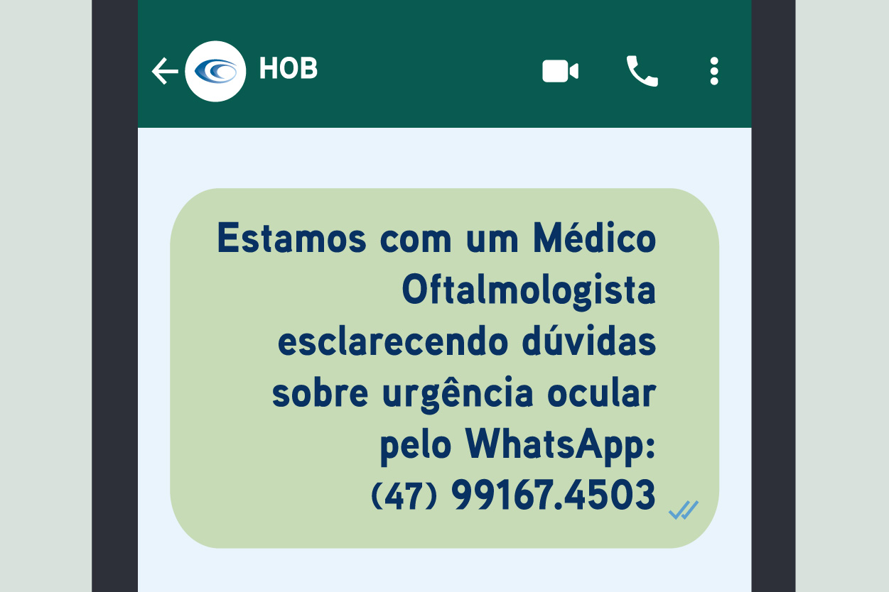 Hospital de Olhos de Blumenau – HOB contará com médico oftalmologista que fornecerá orientações referentes a urgência ocular pelo telefone (47)99167-4503. A medida estabelecida vale entre 9 e 16 horas e enquanto durar a pandemia do novo coronavírus.